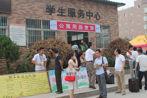 一大早,学院领导都来到报名现场指导并检查各项迎新工作。报到现场人头攒动,秩序井然,为方便新同学登记报到,各系都在显著的位置摆放了标有院系名称的提示牌,青年志愿者热情地引导新生及其家长办理报到手续、指引报到流程、协助托运行李。承担各职责窗口的工作人员认真负责,一丝不苟地为新同学们办理入学手续,同时各系还安排老师维持现场秩序,并向新同学及家长提供相关的咨询服务,各项工作有条不紊的进行。这些温馨、细致的服务深深地打动了新生和家长。