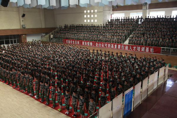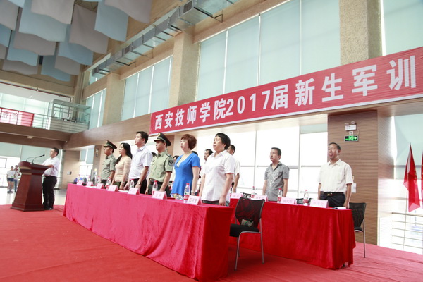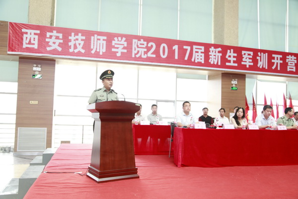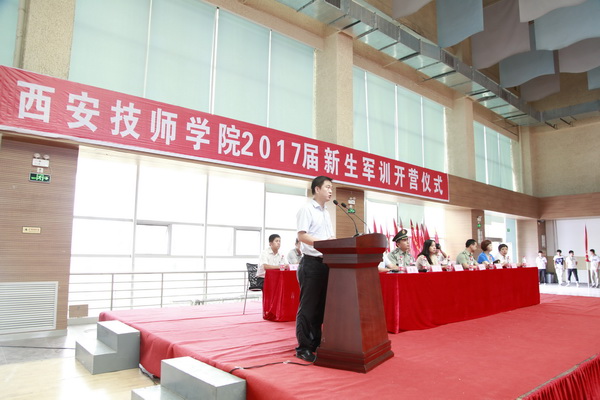 8月23日上午九点半,西安技师学院2017届新生军训开营仪式在我院文体活动中心隆重举行。副院长赵辉、各部门负责人及陕西君威学生军训教官派遣队的领导和教官们参加了开营仪式。仪式由学生工作处处长黄磊主持。