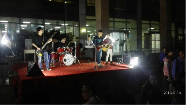 5月12日晚8:00,学院电声乐团fly乐队在文体中心门口献上了一场精彩绝伦的校园演唱会。这也是乐队成立以来,第二次专场演出。