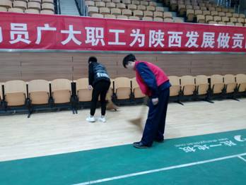 学生打扫文体活动中心