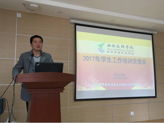 在会议上,学生工作处丁安荣老师就班级管理的日常工作内容和要求对全体班主任进行了培训,使班主任对自己的工作有了更进一步的认识和了解。同时班主任代表秋彩霞、常薇、郑亚西、高峰和学管干事李峰老师从学生心理健康、素质教育、班级管理方法入手,通过自己的亲身经历和体会对如何做好班级管理和班主任工作进行了工作交流。常薇老师针对所带班级学生的特点,通过平时对学生察言观色去认识学生,了解学生,在教育学生的过程中,用苦口良药中加点糖,逆耳的忠言前说些顺耳的话等方式来调动学生的积极性和班级的凝聚力。李峰老师在交流中将 “勤”作为班主任日常工作重点,总结出三点:即对学生要敢于管理、勤于管理、善于管理,让学生信任班主任,信服班主任,才能够做好学生管理工作,才能够教育学生健康成长。