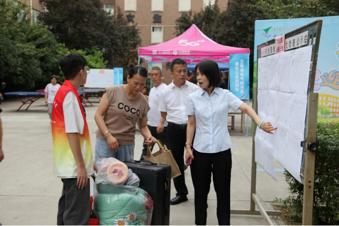 院领导深入走访各系迎新点、新生物品发放点,看望前来报到的新生,并向参与迎新工作的师生表示慰问,现场协调报到工作中的临时问题。
