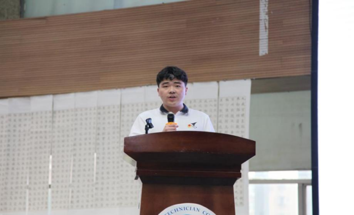 26G电气班学生马明涛作为获奖学生代表发言,号召同学们不断努力提高自身综合素质,继承发扬五四精神,以执着的信念、优良的品德、丰富的知识、过硬的本领担负起历史重任,让五四精神放射出更闪耀的光芒。