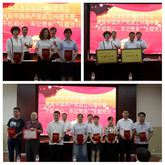 6月26日下午2:30分,西安技师学院党委召开庆祝建党98周年大会暨“不忘初心、牢记使命”主题党日活动。全体在职教工党员、离退休党员代表及2019年新发展党员共计150余人参加了会议。会议由技师学院院长冯柱主持。