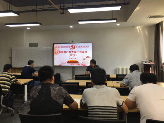 为开展好“不忘初心,牢记使命”主题教育学习研讨工作,现代服务系党支部于7月10日上午在智慧社区会议室组织全体党员教师集中学习《中国共产党支部工作条例》《中国共产党党员教育管理工作条例》和黄大年、张富清、郑德荣等先进人物事迹。