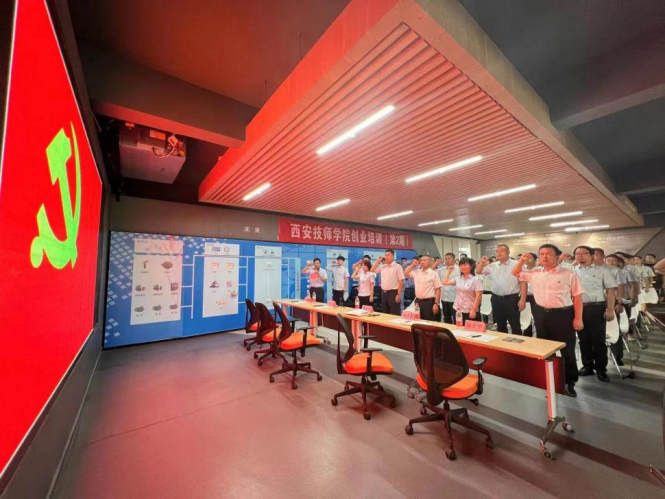 为庆祝中国共产党成立101周年,宣传党的光辉历程和丰功伟绩,激励广大党员干部积极投身学院改革和建设,加快学院高质量发展,以优异成绩迎接党的二十大胜利召开,2022年6月30日下午,西安技师学院党委在智能制造中心大厅举行庆“七一”主题党日活动暨党委书记讲党课活动,学院领导班子成员、中层干部、党支部书记、支部委员、各部门主管以及2022年新发展党员参加了本次活动。活动由学院党委党委委员、副院长张大宁主持。