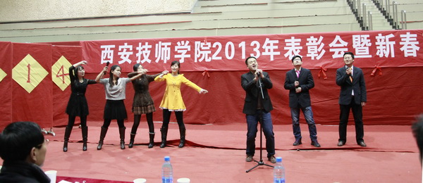 2014年1月8日下午,学院2013年表彰大会暨新春联欢会在咸阳校区文体活动中心隆重召开。学院领导李长江、王德意、袁建章、赵辉以及全院教职工参加大会并观看了精彩的文艺演出。