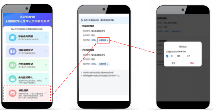 生成核验编号和毕业去向登记信息表,点击查看下载报告,将报告保存至手机。可在档案接收部门提供姓名和核验编号,查询自己的档案。