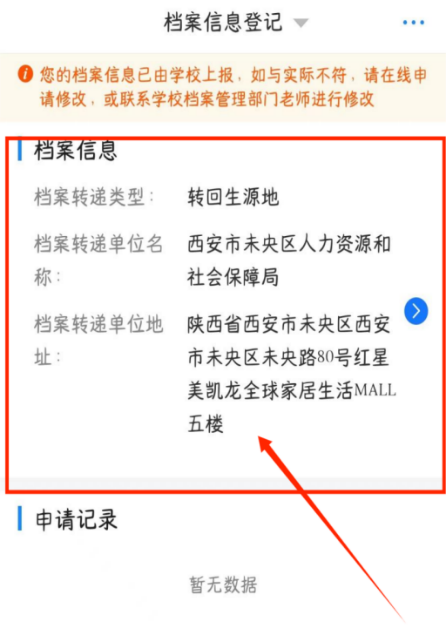 3、档案转递信息:档案迁往单位、档案迁往地址、档案迁往单位邮编、档案迁往单位联系人、档案迁往单位联系电话。