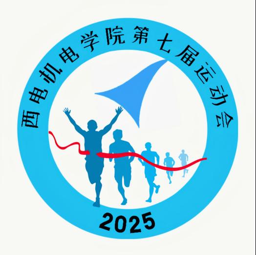 圆环处,“西安技师学院西电机电学院第七届田径运动会”字样清晰环绕,明确赛事归属与届别;下方“2025”数字标注,定格专属记忆,赋予会徽独特纪念意义。整个会徽融合运动激情、科技质感与纪念价值,生动诠释赛事精神内核。