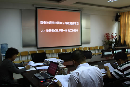 会上,王院长总结了我院示范校建设的前期工作、验收要求,项目组成员冯小平主任介绍了验收工作的基本情况。验收组全体成员查阅我院示范校建设第一阶段的五个专业的相关子项目成果材料,并认真听取各项目负责人对项目建设情况的详细汇报。各项目负责人就项目的建设完成情况、成果、特色、亮点,以及遇到的问题、困难和建议,还有下一步的工作措施向全体项目组成员做了详细的汇报。全体验收组成员听取汇报的同时,围绕我院示范校建设第一阶段工作的相关问题,向项目负责人进行提问,并一同进行积极的讨论。会议通过了我院国家示范校建设项目人才培养模式改革第一阶段工作验收。