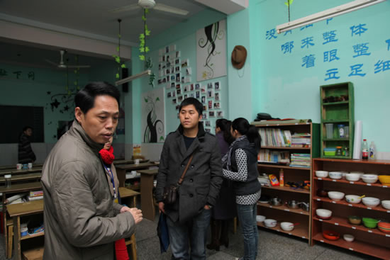 早上八点整,我院代表们在行知技师学院负责带队的老师及该院10春市场营销(中专)班的同学们的引导下,参观了该校学生独具特色的户外晨读。接下来的时间里,代表们参观了该院的体育馆、教学楼、实验楼、学生作品陈列室、古董室、校园文化社团展室、烘焙专业学生实操车间,以及学生公寓和食堂。整个参观考察过程中,通过行知技师学院的带队老师与同学们热情、细致地讲解,使我院代表较为全面、生动地了解到行知技师学院的基本概况,以及该院推行的“生活即教育”、“社会即学校”、“教学做合一”教育理念是如何在日常教育教学中具体实践的。