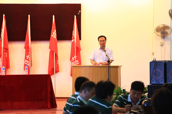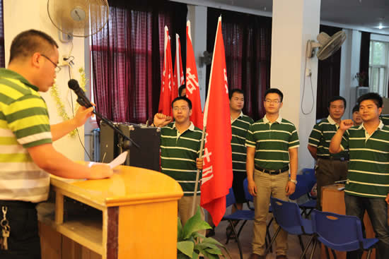 工业自动化系副主任黄磊代表全体外出招生宣传小组的成员进行了充满激情与必胜信心的发言,极富感染力的发言感染了全体在场成员。发言结束后,大家一道在黄主任领誓下进行了庄严的宣誓,“百炼成钢、百日留芳,拼搏进取、再创辉煌”!