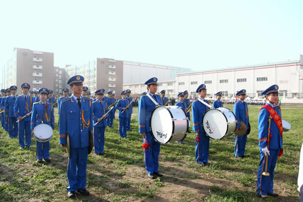 由学生组成的军乐团方队