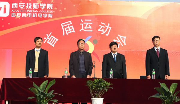 在一片热烈的气氛中,学院院长李长江宣布西安技师学院首届大学生运动会比赛正式开始,刹那间五彩缤纷的彩带腾空而起,把春光明媚的天空装点得格外美丽。