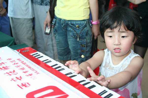 运用单片机原理研制的电子琴深深吸引小参观者的目光