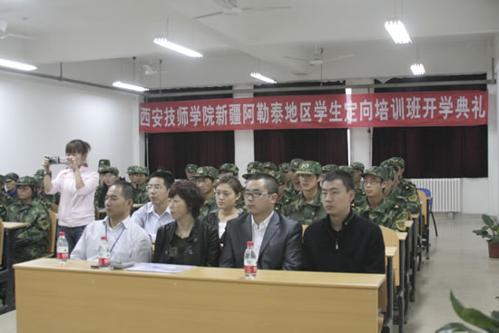 2010年10月10日,新疆阿勒泰地区学生定向培训班开学典礼在我院位于西安沣渭新区西电产业园内的新校区举行。陕西省技工学校指导中心主任张春生、新疆阿勒泰地区教育局副局长吴南川、学院院长李长江、副院长贺惠民出席典礼,新疆阿勒泰地区教育局随行人员、学院相关部门负责人及新疆阿勒泰地区来我院学习的45名同学参加典礼。