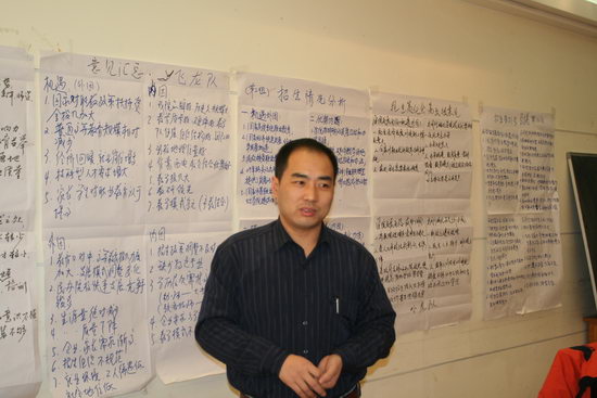 本次策划会由学院副院长贺惠民主持。首先,学院院长李长江对今年学院的招生工作进行简要总结,并对今后招生工作提出一些希望。然后,李院长运用SWOT分析方法,通过分组讨论形式,将与学院招生工作密切相关的外部的机遇、威胁和内部的优势、不足之处等方面进行分析归纳。李院长对归纳出的共性问题和个性问题加以具体分析,引导大家从中得出一系列对今后招生工作颇具影响力的决策性意见。本次策划会通过头脑风暴的形式,让所有参加者在自由愉快、畅所欲言的气氛中,自由交换想法或点子,并以此激发参加者创意及灵感,产生了大量对学院今后招生工作具有启迪意义的意见和建议。