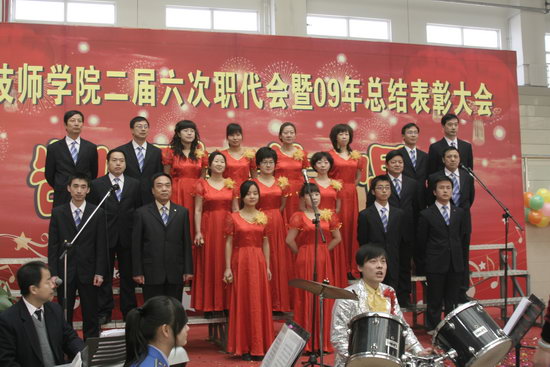 会议由副院长王德意主持。大会认真听取和审议了院长李长江的行政工作报告,听取和审议了党委副书记工会主席袁建章的工会工作报告,书面审议了工会经费审查报告。经全体职工代表举手表决,一致通过会议报告。会上对2009年获得各种荣誉的集体、个人进行了表彰。会后,举行了“凯歌共唱”迎新春教职工合唱比赛。
