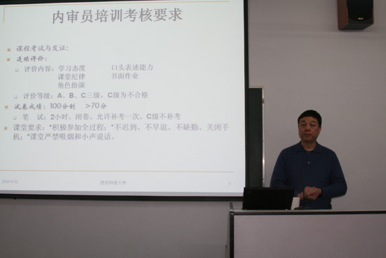 本次培训班特聘请高级验证审核员、西安科技大学教授张全瑜老师进行授课, 培训主要对QMS各标准产生的背景介绍、ISO9000标准理解、QMS内部审核员审核技能讲解,通过大量引用案例精湛讲解标准方法在管理中的运用。参加此次培训班的学员,充分利用此次培训的机会,认真听讲,详细记录,课堂秩序非常好。在实战演练中,学员们结合体系运行中存在的实际问题进行了提问,张老师针对大家提出的问题做出了耐心细致的解答。大家都一致反映通过此次培训收获不小,使得大家受益匪浅。