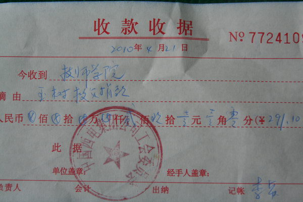 2010 年,我国西南地区灾情严重、大地龟裂。灾情时时刻刻牵动着西安技师学院每一位教职工和学生的心,温情爱心也开始在这里大面积汇聚。全体师生积极响应学院号召,共计筹集善款18775.2 元,这里面有教师的爱心捐赠9690元,更有孩子们苦心积攒的零花钱9085.2元。 2010 年 4 月 14 日 7 时 49 分灾难接踵而来,青海省玉树县发生了 7.1 级的地震。西安技师学院立刻号召全体教师向灾区捐献的棉衣、棉被。在短短不到半天的时间里,全体教师共计筹集衣物987件,学生自发捐款291.1 元。