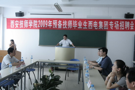 6月10日上午,我院09届预备技师毕业生西电集团专场招聘会在新校区举行。中国西电集团所属的西开高压电气股份公司、西电变压器公司、西电高压开关有限公司、西电三菱公司等12家企业参加招聘会。