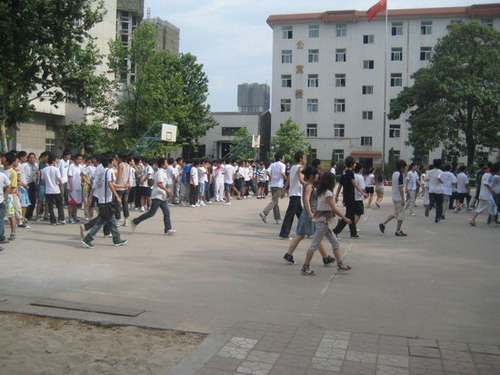 2009年6月16日下午4:00,技师学院09年度防震紧急疏散安全预案演练如期在学院总校教学区进行。