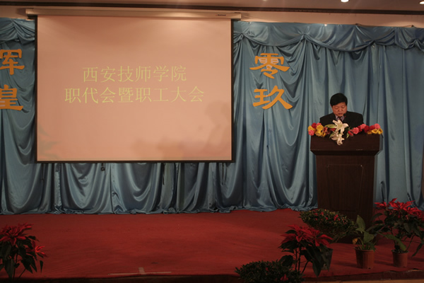 王长奎书记随后做了《积极做好工会工作,充分发挥工会组织的职能作用》工会工作报告。王书记首先从五个方面对学院一年来工会工作进行了总结:第一,坚持民主管理,保障各项工作协调有序进行,促进学院稳步快速发展;第二,积极开展教职工技术比武、劳动竞赛和学习活动,努力提高职工技能素质,培养爱岗敬业精神;第三,关心职工工作生活,开展职工业余文体活动,调动职工的劳动热情和工作积极性;第四,“一方有难八方支援”,大力弘扬友爱互助精神,积极搞好捐献捐助工作;第五,定期召开工作例会,工会工作更加规范,定期组织工会干部学习培训,努力提高工会工作水平。其次,王书记还从五个方面对学院未来一年工会工作进行了规划:第一,继续认真履行好工会职能,“全心全意依靠职工,维护职工合法权益”引导职工为学院发展做贡献;第二,发展是一个单位的永恒主题,引导职工在学院发展过程中发挥主观能动性和主人翁作用,为学院的发展贡献力量;第三,更加广泛、深入地开展各项健康向上的职工文体活动,调动职工劳动积极性和工作热性,推动学院两个文明建设;第四,关心职工工作生活,为职工办实事,使教职员工感受到集体的温暖和团队的关怀;第五,加强工会组织自身建设,增强工会干部素质,不断提高工会工作水平。