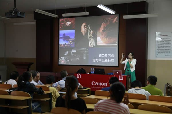 北京著名人像摄影师王小宁,结合佳能相机的特点,介绍了使用技巧与方法、闪光灯多角度运用、频闪、多重曝光的技术,并就人像摄影的构图谈了专业摄影师的拍摄、处理方法,与大家交流分享。活动中,王小宁、陆健安还为多媒体学生和摄影爱好者抽取一、二、三等奖,并为他们颁奖。先后有7名摄影爱好者分别获得佳能公司的纪念品。