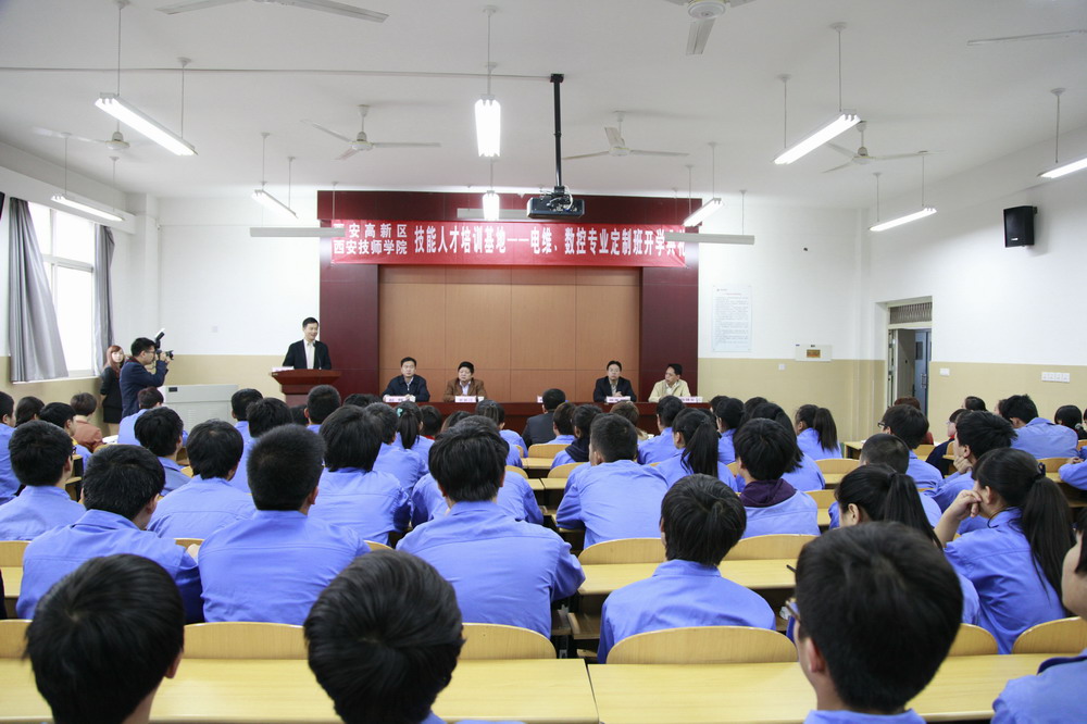 开班典礼上,高新区管委会副主任陈辉介绍了西安高新技术开发区是西部高新科技产业的前沿领地,是我国发展高新技术产业的重要场地,汇聚了科技型、研发型、生产制造型企业1600余家。陈辉勉励莘莘学子用心学习、善于思考、不断提高敬业精神,成为高新区德才兼备的高技能人才。定制班学生代表王佳龙在会上发言,表示要珍惜这次学习机会,专心致志、全神贯注地投入到学习当中,用所学知识回报学校、回报企业、回报社会。
