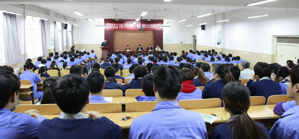 最后,李长江院长在开班典礼上讲话。他说,西安高新技术产业开发区是国家级高新区,主要经济指标增长迅猛。技师学院是首批全国高技能人才培养示范基地和首批国家中等职业教育改革发展示范校。据不完全统计,近十年内,已经为高新区企业输送了五千名学生。通过开设定制班,加强企业和学校在课程设置、实习等方面的合作以及企业选派技术、管理人员到学校进行专业技能和职业素质方面的教学和指导,必将提高学院技能人才培养的针对性和实用性,对学院教育教学改革及技能人才培养质量的提升都将起到极大的推动作用。希望同学们加强职业道德、职业意识、职业行为、职业技能的培养,我们将全力把学院第一个定制班办出特色,为满足高新区现代化建设的发展需要做出应有的贡献。