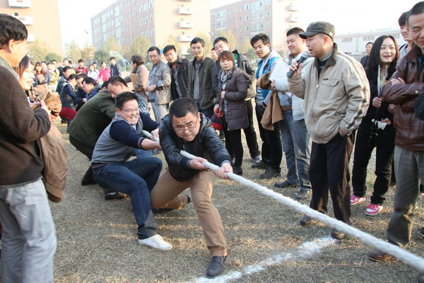 为丰富我院教职工的业余文化生活,本着“轻松工作,愉快生活”的目的,学院工会于11月19日在咸阳校区组织全院八个分会,共九个代表队举行了2013年度教职工拔河比赛。学院田径场上人声鼎沸,热闹非凡,助威声、呐喊声、喝彩声此起彼伏。随着裁判员一声哨响,比赛正式开始,一时间,参赛队员卯足了劲,涨红了脸,抓紧了绳,全力以赴,努力争夺。加油声、叹息声、欢笑声此起彼伏。经过多轮激烈的对抗和较量,五分会(工业自动化系)问鼎本届拔河比赛冠军,八分会(豪特公司)、三分会(信息艺术系、机械系)分获亚军、季军。