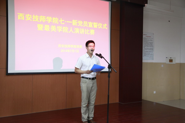 7月1日,西安技师学院党委在C座302室召开“最美学院人演讲比赛”。学院党委书记李长江、纪委书记袁建章、副院长王德意出席了大会。