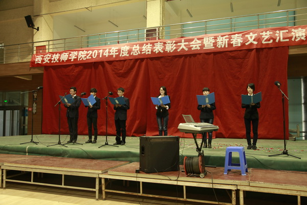 2015年1月16日下午,学院2014年度总结表彰大会暨新春文艺汇演在文体活动中心隆重召开。学院领导李长江、王德意、袁建章、赵辉以及全院教职工参加大会并观看了精彩的文艺演出。