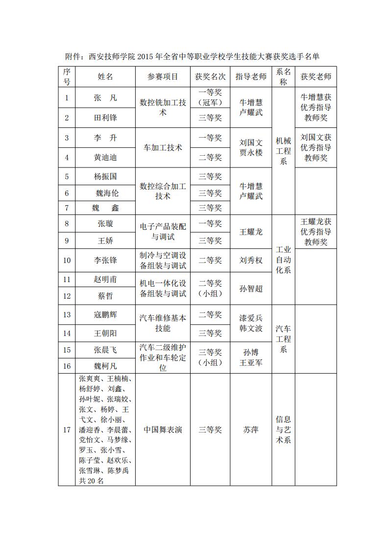 2015年4月初,省教育厅、省人力资源和社会保障厅与省教育厅、省人力资源省教育厅联合举办了2015年全省中等职业院校学生技能大赛。