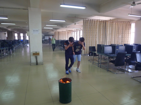 为了确保学生在校园内遇到火灾等特殊情况,能在最短的时间内迅速撤离现场,疏散到安全区域,同时也为了加强安全教育和管理,广泛深入地开展应急疏散工作,使师生的应急疏散能力、自我保护能力以及安全意识得到提高。2015年6月25日下午,信息与艺术系师生在E座4楼计算机机房进行了一次火灾安全疏散演练。