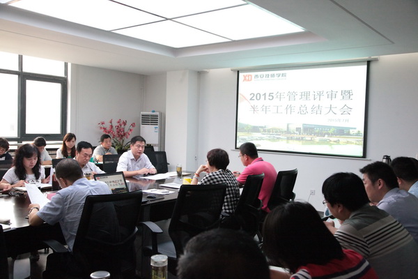 2015年7月17日,学院召开了2014-2015学年度质量管理评审暨半年工作总结大会。学院院长李长江、副院长袁建章、赵辉,管理者代表王德意,全体中层干部共计30余人参加了会议。