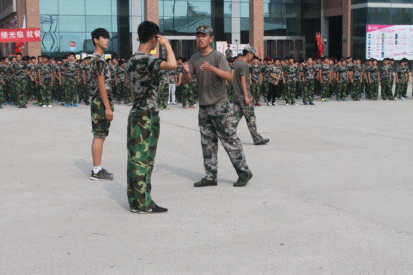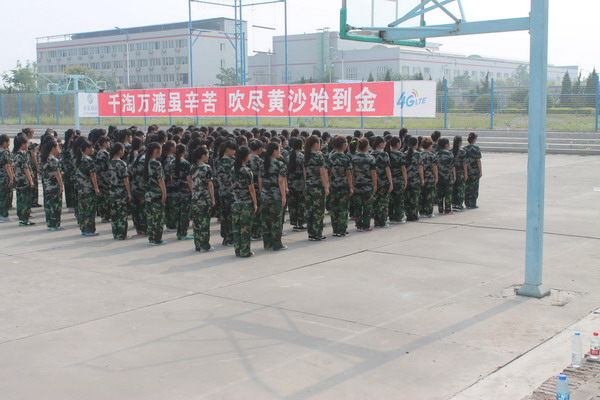 在部队教官的亲切关怀和严格训练下,短短几天时间,齐步走、正步走、齐步变正步、解散、集合及分列式等预定训练科目已初见成效。教官手把手教,学生认真的学,在军训队列训练中,方队整齐,精神饱满,步伐矫健、口令准确、声音嘹亮。新生们对军训都充满了热情和信心,纷纷表示不会辜负教官和老师们对自己的关心和期望。除了每天对学生进行基本体能训练外,还进行纪律教育、坐姿、站姿等军人基本军容军纪常规教育;国防知识教育、学唱军歌、讲军事故事、撰写军训体会等。 在这里,他们体验了军营生活,进行意志的磨炼和体能的训练。