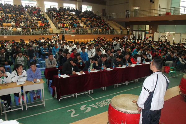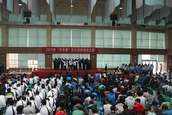 2015年10月29日,由学生工作处主办,学院团委协办的西安技师学院 “中华诵”经典诵读决赛在我院文体中心二楼隆重举行。学院纪委书记、副院长袁建章,以及相关部门负责人、班主任老师及各系学生代表1200余人参加了本次活动。本次诵读比赛,通过系内的初赛,共选拔出8个节目参加决赛。参赛选手个个声情并茂,情绪饱满激昂,朗诵铿锵有力,不断掀起比赛的高潮。