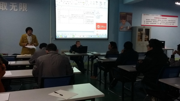 高德龙老师在展示培训部电维各培养层次的技能鉴定人才培养方案,和大家共同探讨修改之处。