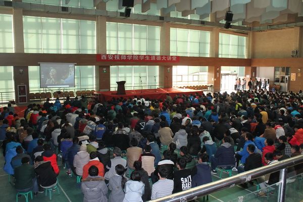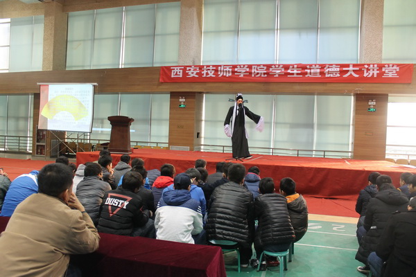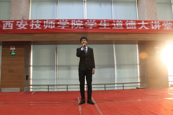2015年12月15日下午3点45分,西安技师学院学生“道德讲堂”活动在文体中心二楼隆重举行,本次活动由学生工作处主办,主题是“做一个有道德的人”。各系主任、全体学管老师、班主任以及各系学生代表共1200余人到场参加了活动。