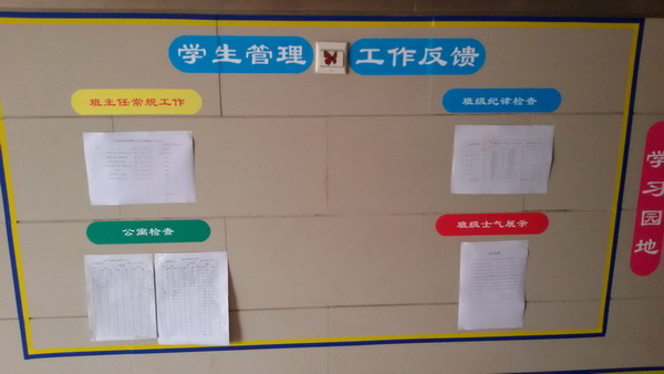 看板的设计主要包含两部分内容,一部分是荣誉墙,在系部所取得的荣誉上面写着“荣誉属于昨天,奋斗当在今日”,时刻的提醒、鞭策和勉励每一位自动化系成员戒骄戒躁,继续努力,争取更好地成绩;另一部分主要是针对系部的工作、学生和教学管理,将本阶段的工作计划、工作目标、执行进度、取得的成绩及存在的问题及时地反映出来,使每位老师能够实时、准确的了解系部工作动态,信息反馈及时有效,促使大家更好地参与到系部工作中,改进工作方法,注重管理技巧,钻研教学方法,提高教学质量,保证系部工作能够顺利高效的执行。