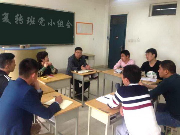 会中姚书记和大家一起重温入党诗词,明确党员的义务权利并与其班主任孔爱珍老师和大家亲切座谈,就退伍军人如何转型,如何用党员标准严格要求自己,进行了交流,党员王小东说:离开部队迷茫,落差,面对一系列问题应调整心态,改变自己,积极面对。刘晓峰说:要想立足就要做好转型,就得学好一技之长。大家相继发言,姚主任进行了总结,鼓励大家更好地完成这一阶段的学习任务。