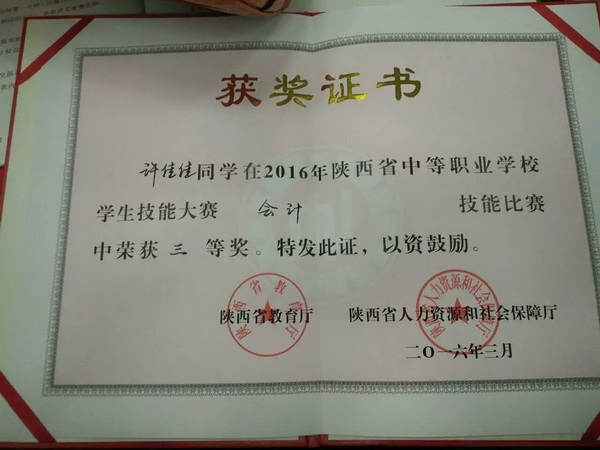 3月29日上午,随着主持人一声“比赛正式开始”,由陕西省教育厅、陕西省人力资源和社会保障厅主办的2016年陕西省职业院校技能大赛会计技能赛项在西安实验职专赛点火热开赛。来自全省的选手们在这里各显身手,而我院信息与艺术系会计专业的许佳佳同学获得三等奖。