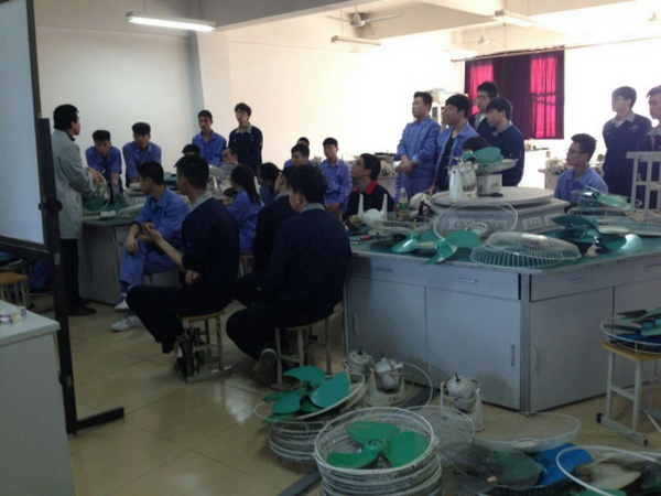 此次的维修任务主要由工业自动化系第二届兴趣小组的同学承担,在班主任张璇老师的组织分配和刘秀权老师的讲解指导下紧张有序的进行着。在维修过程中,同学们热情高涨,积极认真,通过对风扇的清洗、故障检查分析、拆装和维修调试,不仅了解了电动机的基本机构和工作原理,掌握了故障检修的方法和技巧,更真切的体会了学习带来的乐趣。看着一台台原本已经无法工作的废旧风扇顺利地工作起来,同学们满满的成就感,越干越起劲,下课都不愿意回去,直至全部任务的完成。