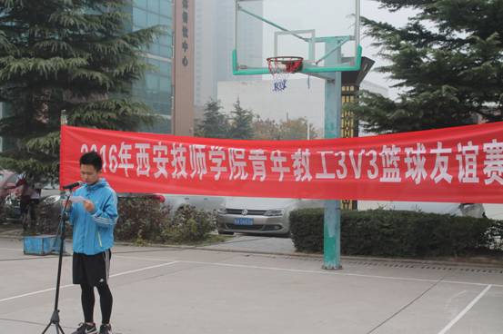 为了进一步丰富我院青年教职工的业余文化生活,增强老师的身体素质,增进部门之间的交流,学院团委于11月18日下午在学院篮球场举办2016年青年教工3V3篮球友谊赛开幕式及揭幕战,参加本次活动的有学生工作处崔处长、李副处长、汽车工程系贾主任、信息与艺术系王主任、各参赛队员、院学生会志愿者共计80余人。