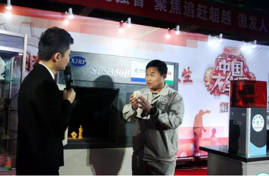 陕西省数控技术状元、西安技师学院教师赵鹏向主持人展示3D打印作品