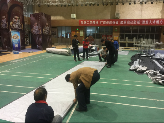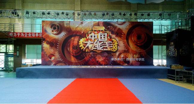 因中央电视台《中国大能手》栏目组拍摄要求,需对3D打印决赛整个主会场进行遮光处理,我院后勤处承接了此项工作。
