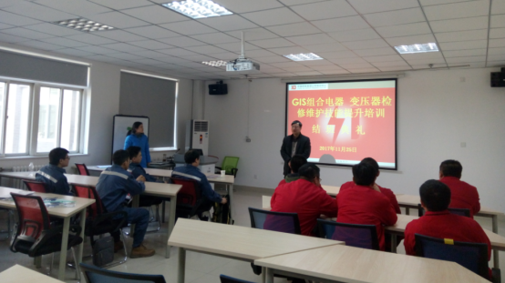 2017年11月25日,由高压电器培训中心承办的GIS组合电器、变压器检修维护技能提升专项培训班圆满结束了。下午16:00在新校区D座206培训教室举行了结班仪式。在结班仪式上,高压电器培训中心副主任姚永乐做了培训总结并鼓励学员们在今后的工作中不断钻研进取、开拓创新。
