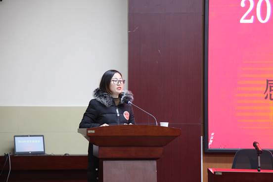 学生管理服务中心杨兵主任对2018年招生工作做了总结分析。她运用大量的数据从“计划完成情况”、“数据分析”、“工作回顾”等几个方面对2018年学校招生录取、报到、地区分布、主要作法等进行了详细阐述,并对近几年招生相关数据进行对比分析,对明年的招生提出了自己的工作思考。